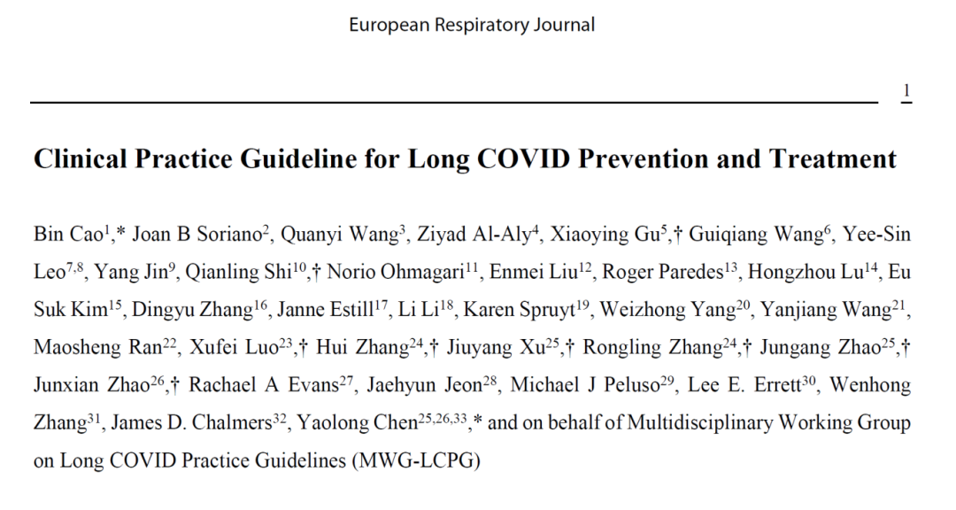 2026年3月,由来自 10 个国家、覆盖 10 个专业领域的 60 位多学科专家组成工作组,中日友好医院曹彬教授、我实验室主任陈耀龙教授为共同通讯作者联合制订的《长新冠预防与治疗临床实践指南》正式发表在全球呼吸系统领域的顶尖学术期刊《European Respiratory Journal》。该指南聚焦成人长新冠的预防与治疗核心临床问题,为全球临床医师、药师、护士及社区全科医生提供了首个基于当代循证方法学的长新冠防治循证建议,也为长新冠的规范化管理填补了关键空白。